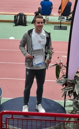 18.02.2026: () - Auch in diesem Jahr startete der Werderaner Keno Krieger im Dreisprung bei den Deutschen Hochschulmeisterschaften. Am 14.2. 2026 in Erfurt ging es für den Doktoranten um die Titelverteidigung. Er vertrat dabei die Universität Bremen. Der dreifache Hochschulmeister musste sich am Ende aber dem Youngster Maximilian Skarke von der TU Chemnitz und dem Vizemeister des vergangenen Jahres, Florian Bernert, geschlagen geben. Mit seiner Tagesbestweite von 14,11 m konnte er sich zumindest den dritten Platz sichern. Damit ist die Universität Bremen nun seit vier Jahren kontinuierlich auf dem Dreisprung-Podest vertreten.
